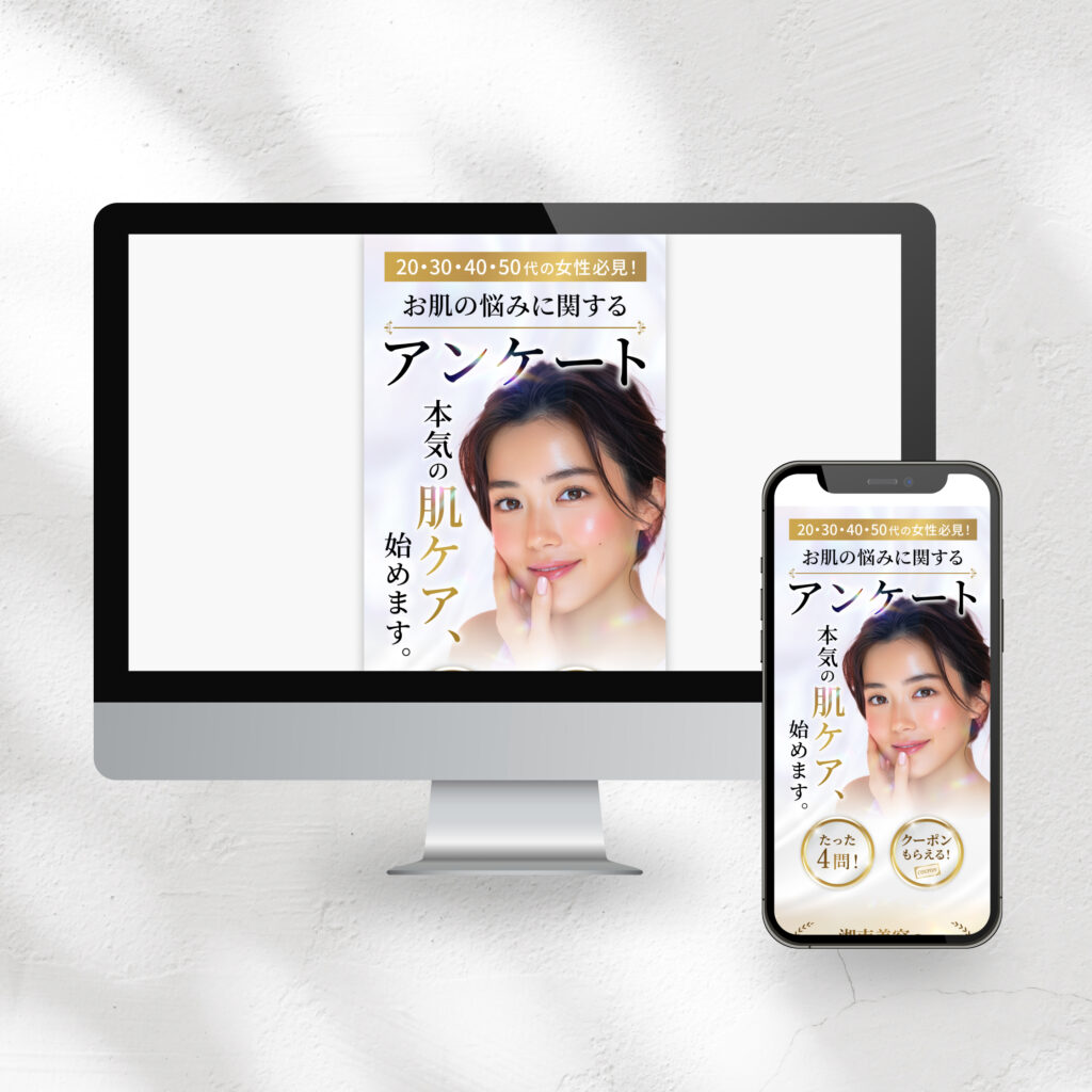 白を基調にゴールドをアクセントとして取り入れ、透明感を意識したデザインでオンライン診療LPを制作しました。